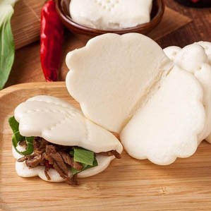 Gua bao is a popular street food in China. It consists of a fluffy, folded steamed bun (similar to a lotus leaf bun) filled with a generous amount of filling, including rich braised pork belly, tangy pickled mustard greens, cilantro, and crushed peanuts. The sweet, salty, and spicy flavors intertwine, creating a complex and delicious taste. Although commonly called "pork belly bun," modern gua bao often includes other fillings such as fried chicken or mushrooms.