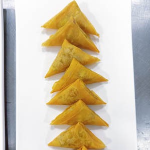 Samosas (or patties) are thin pastries made from refined or whole wheat flour, salt, and water. They are one of Asia's most popular and iconic crispy triangular snacks, filled with a variety of delicious fillings. These pastries are deep-fried to create a golden-brown, crispy crust. The dough is layered, rolled out thinly, quickly fried, and then separated.